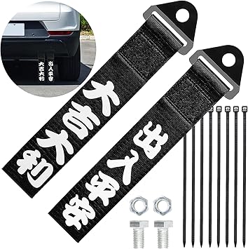 Amazon Com Aulesse 2pcs Tow Strap Jdm Racing Tow Strap Car Modification Jdm Sports Black Racing Tow Strap Tow Strap For Front Or Rear Front Bumper Decortive Trailer Belt With Chinese Slogan Automotive